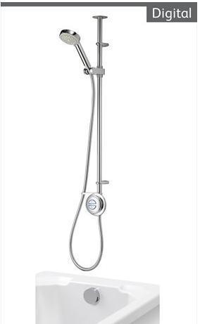 Quartz Digital Exposed digital shower with adjustable head & bath filler (choose Gravity model if fed from tank in loft, otherwise HP/Combi model for pressurised systems)