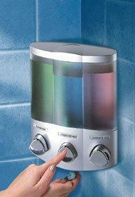 - Conveniently dispenses your three favorite shower liquids at the push of a button